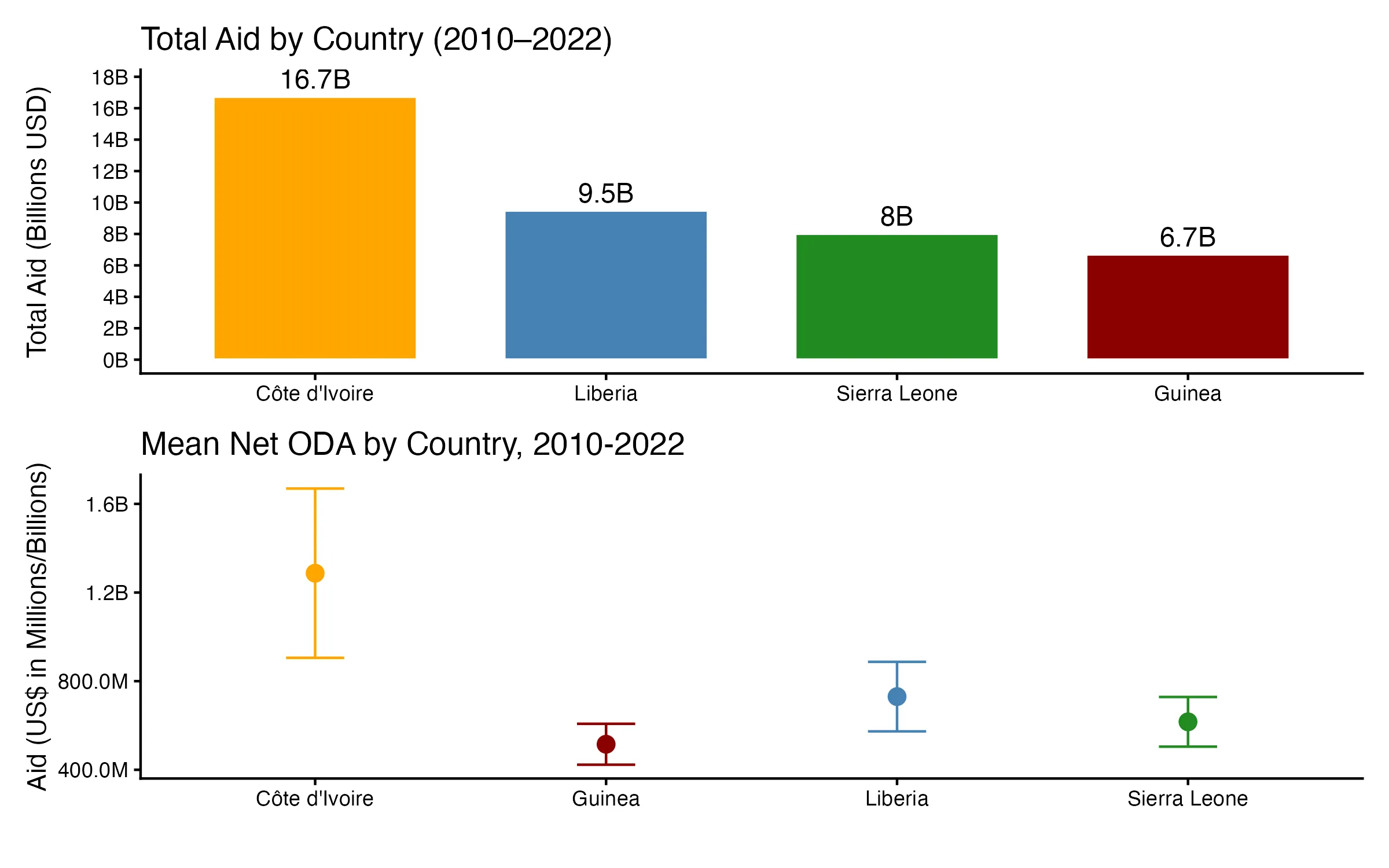 Second, this study generates comparative insights across four countries that share similar economic and institutional characteristics but differ in their capacity to absorb aid and the quality of governance. By analyzing the period from 2010 to 2022, a decade marked by events such as the Ebola outbreak, commodity shocks, and the COVID-19 pandemic, this research captures both crisis and recovery phases, revealing how aid flows interact with cyclical growth patterns.